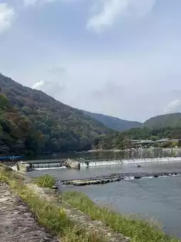 The highly popular sightseeing train in Arashiyama, the Sagano Romantic Train, takes about 25 minutes for the entire ride. Upon arriving at Arashiyama Station, the most popular attraction is the Togetsukyo Bridge, which spans the Katsura River, connecting Arashiyama and Sagano. The name of the bridge means "Moon Crossing Bridge," derived from the beautiful moon views that can be seen from the bridge. Togetsukyo Bridge is the main gateway for tourists to Arashiyama, surrounded by natural scenery such as bamboo groves, mountains, and rivers, providing excellent photo opportunities.