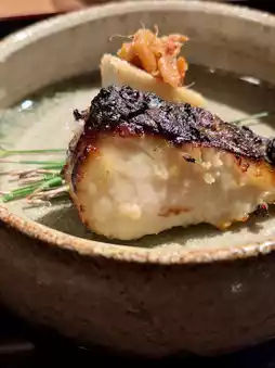 - Grilled Spanish mackerel with saikyo miso and shrimp potato