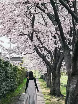 Over a hundred cherry trees bloom along the river, creating a beautiful cherry blossom tunnel.🌸