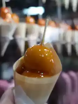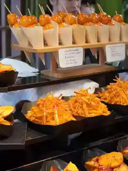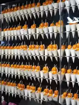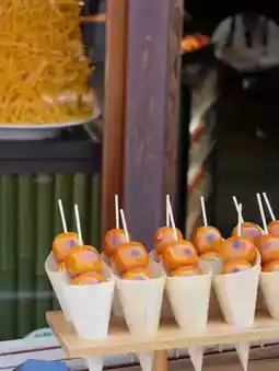 There were cute dangos lined up, including candied sweet potatoes, potato chips, and round dumplings.