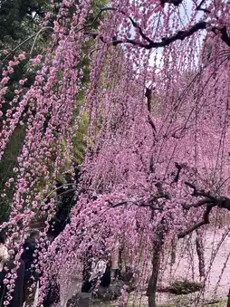 When the weeping plum blossoms are in full bloom, the parking lot fills up even on weekdays, leading to long waits. However, the day I visited was a cold day with snow threatening to fall, so I was able to get in easily.