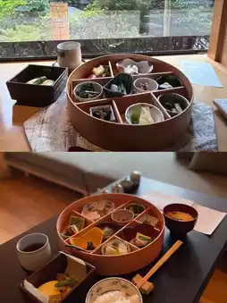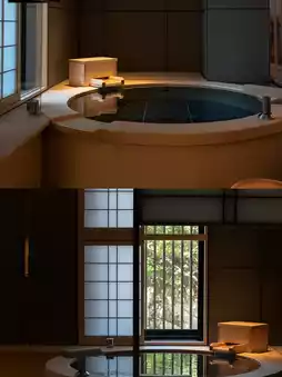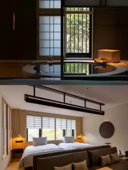 The guest rooms also feature a spacious and comfortable suite layout, each with a natural hot spring cypress bath. The bath is made of high-quality Yoshino cypress from Japan, and the natural cypress fragrance lingers while bathing. The rooms are also equipped with iron kettles, sencha tea, handcrafted vases, and seasonal flowers, creating a sense of Kyoto's seasons and a rich ancient cultural atmosphere.