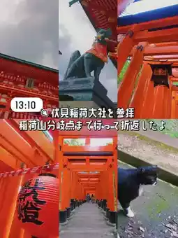 🔆13:10 📍Go to Fushimi Inari Taisha Shrine🗺️ 612-0882 68 Fukakusa Yabunouchi-cho, Fushimi-ku, Kyoto City, Kyoto Prefecture🚶♀️4 minutes walk from Inari Station on the JR Nara Line/7 minutes walk from Fushimi Inari Station on the Keihan Main LineIt started to rain, so I went to the fork and came back! I want to climb to the top someday😊Back to Kyoto Station for a break🍵