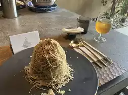 The signature Mont Blanc is made with 1mm ultra-thin Japanese chestnut paste, generously squeezed right in front of you! ✨ You'll be amazed at how fluffy and melt-in-your-mouth it is, changing your concept of Mont Blanc...! 🥄💛 In addition, they use only the highest quality Japanese chestnuts from Tamba, Kumamoto, and Kyoto🍂 It had such a rich taste that it was like eating the chestnut itself🤤💕