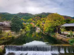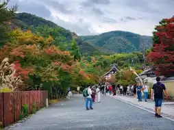 As autumn begins, Arashiyama awakens in a mesmerizing display of seasonal change. The once vibrant green mountains slowly transition into a rich palette of crimson, amber, and golden hues, as if nature itself is painting a masterpiece. The crisp, refreshing air carries the earthy scent of fallen leaves, and a soft breeze rustles through the trees, creating a soothing melody.