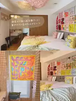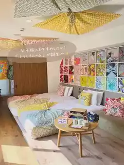 The room uses colorful furoshiki and allows you to enjoy new ways of using furoshiki and its appeal as art throughout your stay 🎨