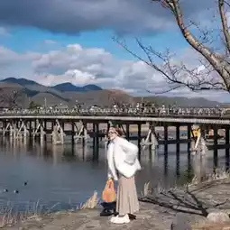 For a place near Kyoto that you can go for a day trip, I recommend Arashiyama. The atmosphere is great. We went without any plans, just walked around, ate, and took photos. It was so chill. I really liked it!