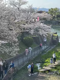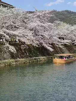 You can also take a boat on the Kamo River from Heian Shrine to Keage Incline, and the cherry blossoms on both sides of the river, along with the art museum and zoo, are so beautiful that it's worth taking a ride.