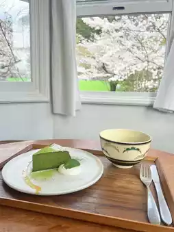 The interior of the store, which was renovated from an 80-year-old Western-style building, is a simple and calm space with a white base. In spring, you can see the cherry blossom trees from the terrace seats and windows, and spend a relaxing time while feeling the change of seasons.