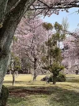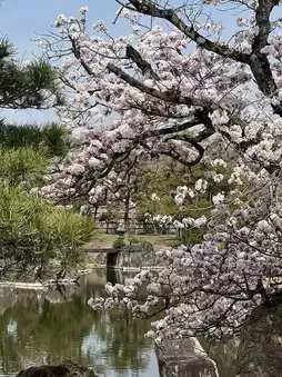 If you want to take a picture with cherry blossoms as a pretty background, it's definitely 🏯Nijo Castle.
