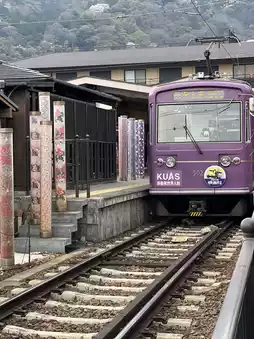 The purple Randen train is so pretty. And it's a really pretty photo spot 📸 because it departs very slowly and comes often.