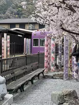 So it was easy and nice to take pictures📸. The Randen train and cherry blossoms are as pretty as you can see in the pictures.