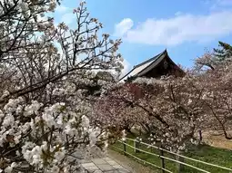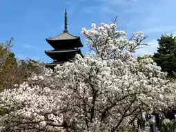 The temple grounds are home to approximately 550 cherry trees, with 130 of them being Omuro Sakura. Their blooming season typically falls between early to mid-April. Strolling through the sea of cherry blossoms while admiring the Omuro Sakura is an incredibly romantic experience.
