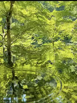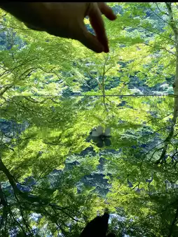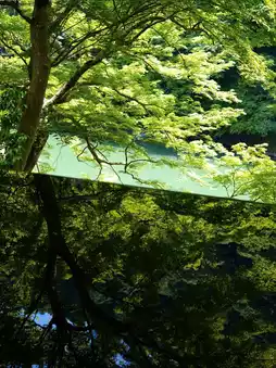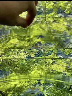 Next to the terrace seat is a table filled with water, and if you sit in front of the table, you can enjoy the symmetry of the view in front of you reflected on the water surface, creating a "water mirror".