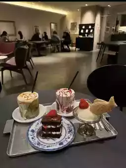 In the basement of the hotel, there was a stylish Korean cafe that was open from 7am👫