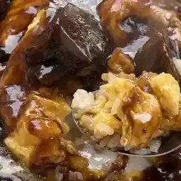 The white rice under the egg soaked in the sauce and balanced the saltiness of the sauce well