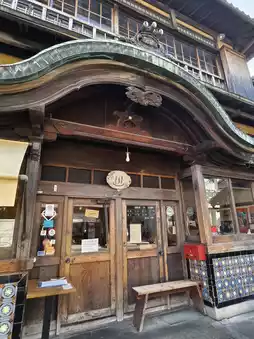 さらさ has several stores in Kyoto. The most special one should be Cafe Sarasa Nishijin near Kinkaku-ji Temple. The cafe was renovated from the "Old Fujimori Onsen" public bathhouse with a history of about 100 years, and these words can still be seen above the door. The entrance has a traditional Tang style roof. The wooden door is old. The interior retains some of the decoration of the previous bathhouse, and the walls are paved with tiles of different patterns, which is very nostalgic. It is now listed as a tangible cultural property.