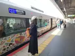 Get on the **Shinkansen Hello Kitty**. It's so cute!