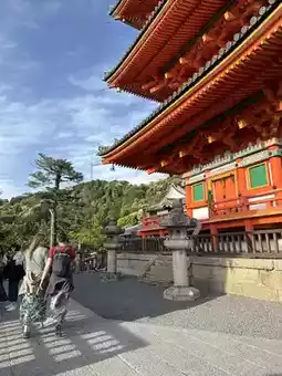 Kiyomizu-dera Temple is one of the must-see temples in Kyoto! It is located on a hill and the view is beautiful. You can see Kyoto in 360 degrees, especially when the leaves change color or when the cherry blossoms bloom. The atmosphere is like being transported to a Japanese movie. 🍁🌸