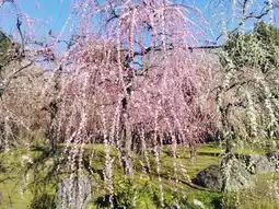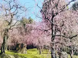 Jonangu Shrine, located in Fushimi Ward, Kyoto City, is famous as the "Great Shrine of Protection from Misfortune." It is also renowned for its weeping plum blossoms, which are at their best around March. Despite being Sunday morning at around 9 AM, the shrine was already bustling with many visitors. The weeping plum blossoms sway gracefully in the wind, creating a charming atmosphere. Although it's a bit away from the city center, it's highly recommended during the plum blossom season.