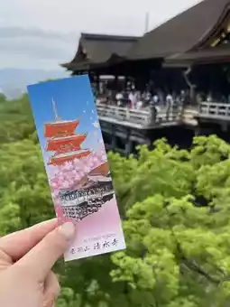 In the afternoon, visit the iconic "Kiyomizu-dera Temple" ⛩️. The view of Kyoto's cityscape from the temple's stage is truly breathtaking ✨. Did you know the design of the admission tickets changes with the seasons? It makes you want to collect them all 🎫🌸.