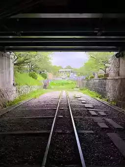 ☝ An incline is a device that lays rails on a slope to transport carts using power (see photo 3). Heading towards the Lake Biwa Canal Museum makes it easier to find.