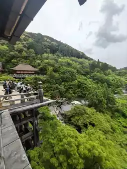 The highlight of the temple is its large wooden stage extending from the Main Hall, constructed entirely without nails and supported by wooden pillars over 13 meters high. This stage offers breathtaking views of Kyoto, especially during the spring and autumn seasons.
