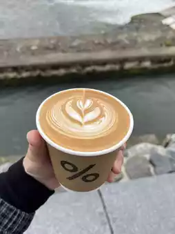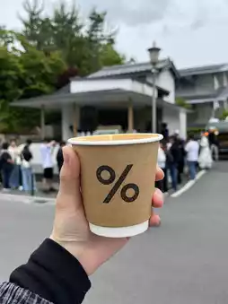 If you go to Arashiyama, it's a rule to take a picture with a cup of coffee. I went to '% Arabica Kyoto Arashiyama'.