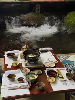 Guests can dip their bare feet in the water while enjoying kaiseki cuisine and chilled somen noodles.
