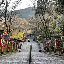 From Eizan Electric Railway's "Kurama Station," it's about a 5-minute walk to the Niomon Gate. From Kyoto Station, the journey, including transfers, takes approximately 90 minutes.