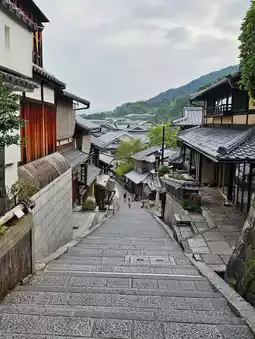Walking here feels like stepping into a living postcard. The traditional facades, noren curtains swaying in the breeze, and the soft rhythm of footsteps on stone create a scene unchanged for centuries. The stairs themselves are a perfect photo spot, especially early in the morning or at golden hour when the light hits the rooftops just right.