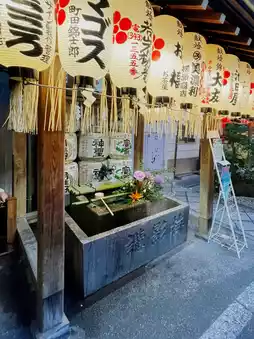 Though small in size, the shrine is full of unique features: its stone torii gate is embedded into the surrounding buildings, creating a distinctive sight. The sacred cow statue within the shrine is said to grant wisdom when you touch its head, while other parts of its body correspond to health blessings. Next to the purification fountain is "Nishiki Water," one of Kyoto's famous waters, with a year-round temperature of about 18°C, suitable for drinking.