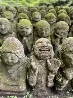 Otagi-Nenbutsu-ji is a temple of the Tendai branch of Japanese Buddhism, located at the foot of Mount Atago, in Arashiyama moutains in the west of Kyoto. Its notoriety is due to the 1,200 Buddha’s disciples’ statues crafted by amateurs from all over Japan during the temple’s renovation in the 1980s, under the supervision of monk and sculptor Kocho Nishimura.