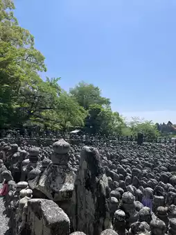 This Jodo sect temple, located in Kyoto's Arashiyama near Sagatoriimoto, is a 15-minute walk from Arashiyama Station. It is renowned for its approximately 8,000 stone Buddha statues and pagodas, as well as its tranquil maple and bamboo forest.