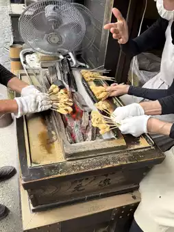 From there, take a taxi to Kazariya and have aburi mochi.