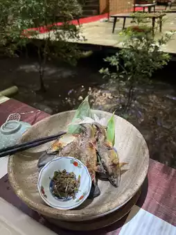 We had made a reservation for Kirakusan's riverside seating at 12:00, so the food came quickly and we enjoyed the delicious food on the cool riverside seating.