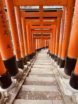 This **8th-century Shinto shrine** is famous for its **seemingly endless tunnels of vermilion torii gates**, dedicated to Inari, the god of rice and prosperity. A must-see for its **otherworldly beauty, hiking trails, and panoramic city views**—especially magical at sunrise or dusk!