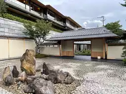 Stepping into the hotel, you might almost wonder if you've entered the wrong place—stone walls, wooden windows, moss, and bamboo groves, all reminiscent of an old Kyoto residence.