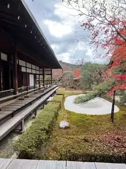 The temple is best known for its striking garden landscapes, which feature a harmonious blend of traditional architecture, moss-covered grounds, and a large pond. During the autumn season, the vibrant colors of Japanese maple trees attract visitors from around the world, making it a premier destination for fall foliage viewing. The temple’s famous Mikaeri Amida (Looking Back Amida) statue, a unique Buddha figure gazing over its shoulder, is another highlight, symbolizing compassion and care.