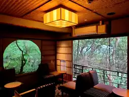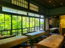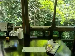 As if possessed, I followed the guide into the inner building and climbed the narrow stairs to be guided to the 2nd floor. The seat was set facing the window. In front of me, there was a view of green tree branches stretching out right before my eyes.