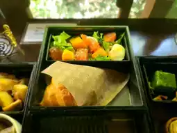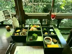 The mackerel is a real work of art. The seasonal fruit salad is also delicious. The six kinds of obanzai remind us that this is Kyoto. As expected, the taste is excellent beyond expectations. The sweets are also the best.