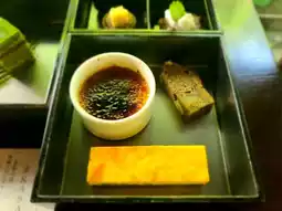 As expected from Kyoto, the savory is classified as Obanzai. The four types of sweets contain autumn and are designed to reflect the season from September to November. It is a Kyoto-like delicateness. The savory flavor is impressive from the start.