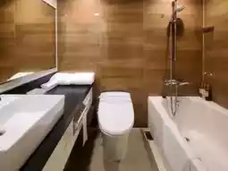 The lounge was lively, with couples and small groups enjoying drinks. Despite the lack of a view, the rooms are spacious, and the modern bathrooms feature deep bathtubs, allowing for a relaxing soak.