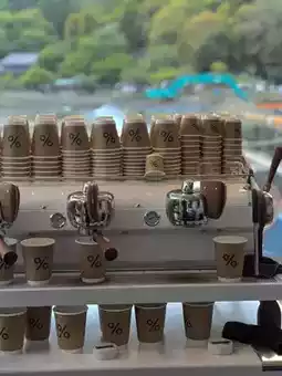 Arashiyama is a famous tourist destination in Kyoto for its bamboo forest Chikurin. In Arashiyama, there is the main store of % Arabica Cafe, a global chain cafe.