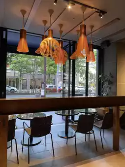 sequence KYOTO GOJO is a very comfortable hotel, but the restaurant on the first floor, THE TASTE, serves a luxurious breakfast that is open to both guests and non-guests. The salad buffet has stylish plates and lots of fresh vegetables. It is open from 7:00am to 12:00pm (last orders 11:30am) and offers a wide variety of luxurious salads, soups, fruits, and drinks. You can choose from four main dishes, including eggs Benedict, sandwiches, French toast, and plates, and they will deliver them to your table. ♡━━━━━━━━━━━━━━━━━ The plate I ordered was freshly made with sausages, fried eggs, rye toast, a small bowl of beans, bacon, and sauteed mushrooms, and it was delicious. ♡━━━━━━━━━━━━━━━━━ This place is also popular as a bar and restaurant in the evening. The comfortable sofas and the DJ's music and lighting made for a very stylish space.