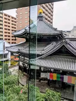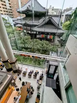 The special thing about Rokkakudo is that it is surrounded by office buildings on all sides. It is quite difficult to capture the Rokkakudo in the photo. The best location is to see the entire building of Starbucks in front through the glass floor-to-ceiling windows.