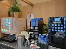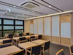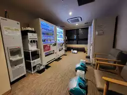 The large public bath is open until 1:00 AM, making it suitable for late arrivals. The large public bath is located on the second floor. Towels are provided, but no bath towels are available. There are only about 10 toilet stalls and only four hairdryers, so it's best to avoid crowds if you wish to use it. The breakfast area offers free and takeaway beverages after breakfast, including a variety of coffees and soft drinks. It's open from 2:00 PM to 10:00 PM, making it very welcoming.