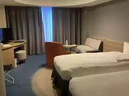 The Biwako Hotel at night is stunning, and the surrounding area is lively.