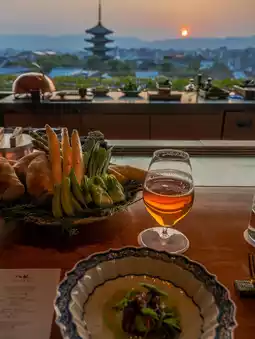 Check-in is a unique experience, bypassing the lobby for a tranquil tea room-like setting. From the guest rooms, you can enjoy breathtaking views of the five-story pagoda and Kyoto's cityscape, both in the morning and at night. The hotel's restaurant, Yasaka, offers Michelin-quality cuisine paired with stunning views.