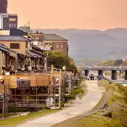 Flowing through the heart of Kyoto, the **Kamo River (Kamogawa)** is the city’s lifeline—a serene escape where locals and visitors unwind under willow trees, dine on elevated platforms (*yuka*), and soak in timeless views of the Higashiyama mountains.
